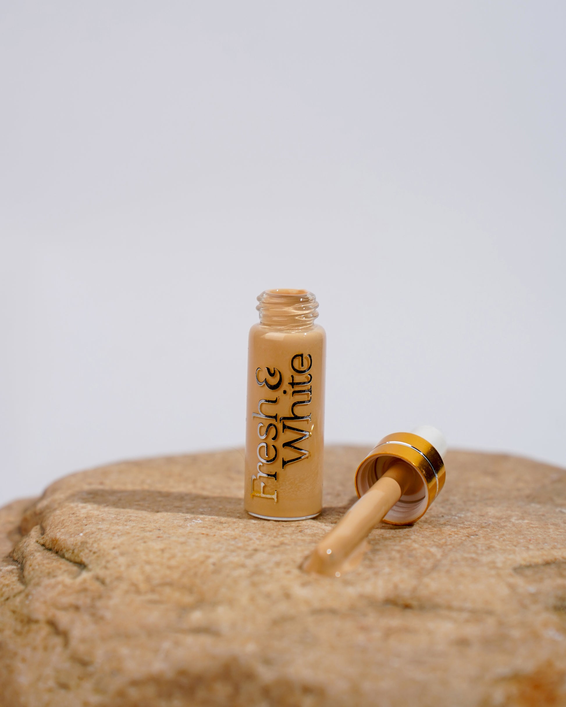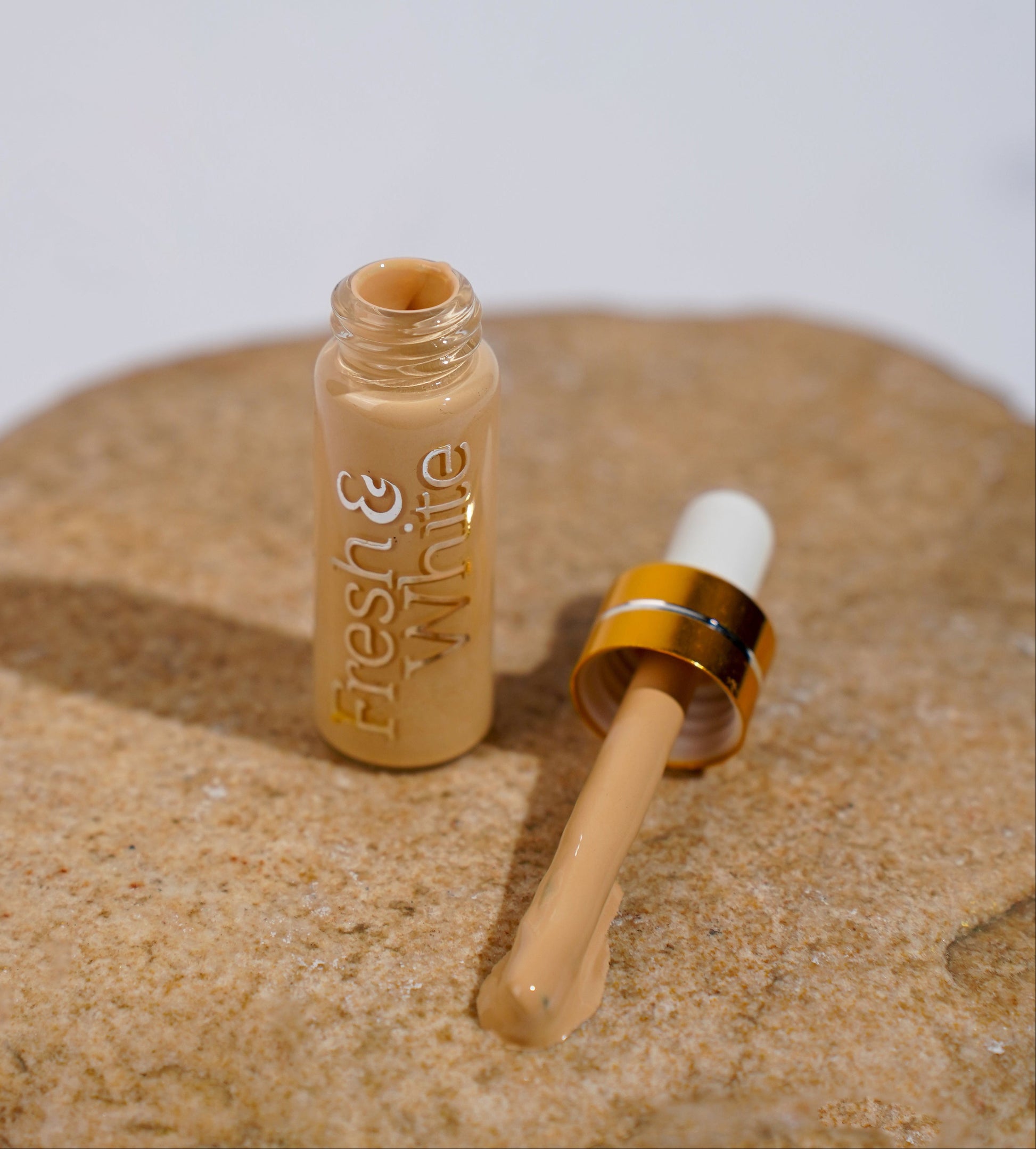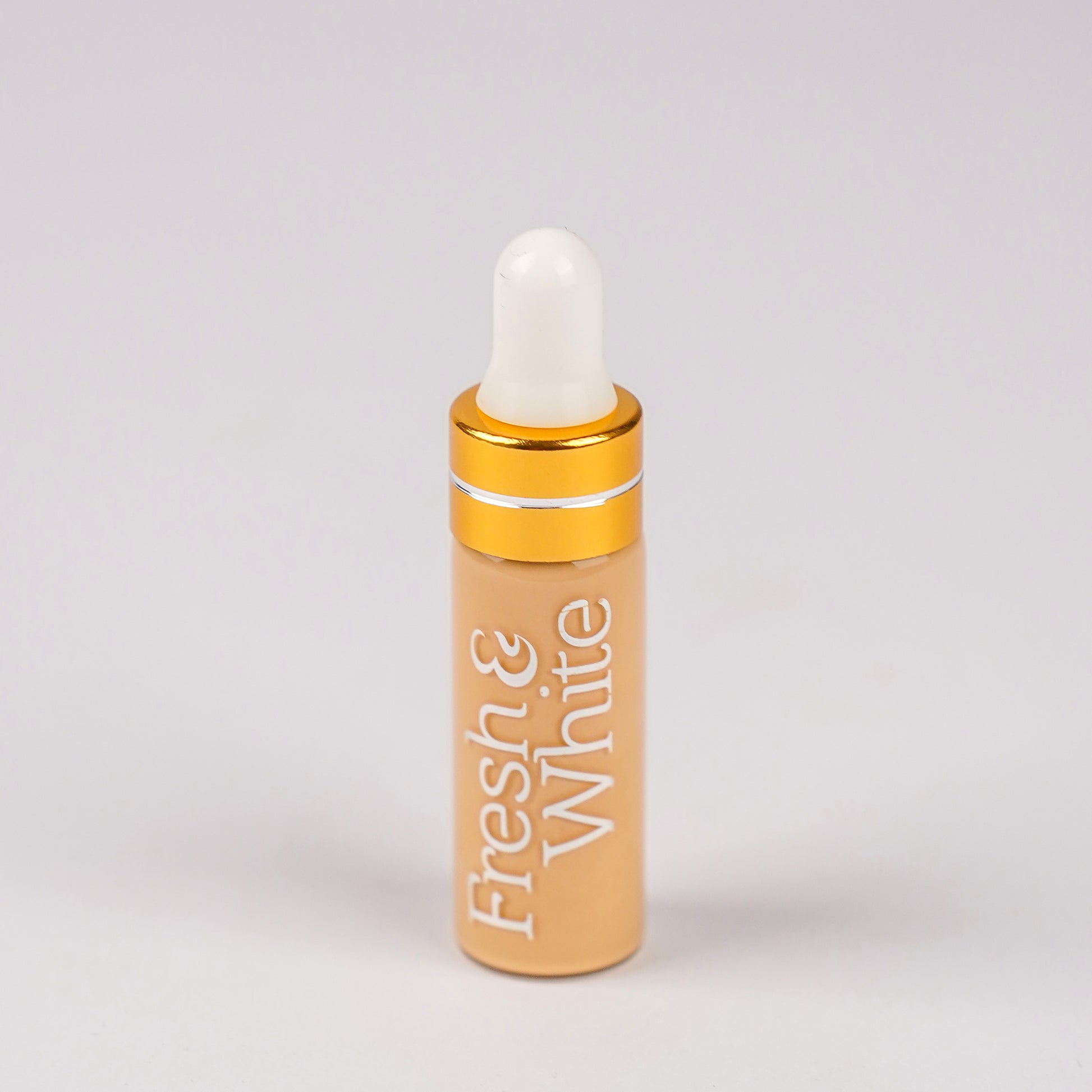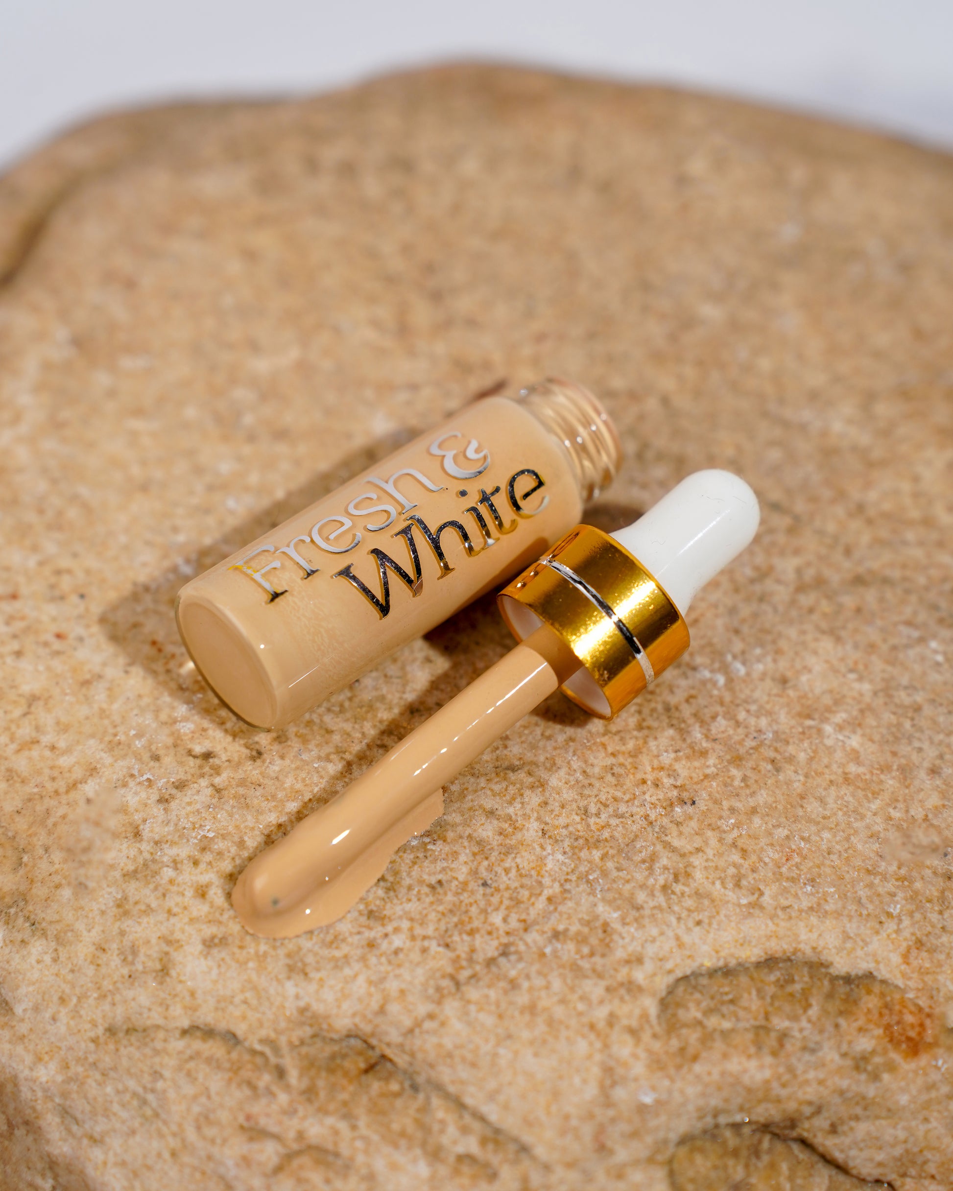 Experience dual action with the Fresh & White Brightening Serum, a unique lightweight foundation base enriched with Vitamin C, Hyaluronic Acid, Niacinamide, and Peptides. Designed for all skin types, this multitasking serum not only evens skin tone but also helps minimize pores, reduce redness, and diminish dark spots.